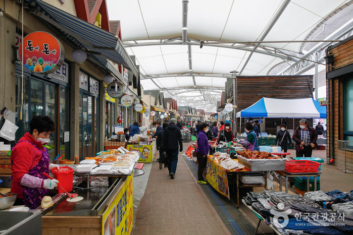 Visit Chuncheon's representative traditional market with various foods such as tteokbokki, hotteok, and buckwheat pancakes |