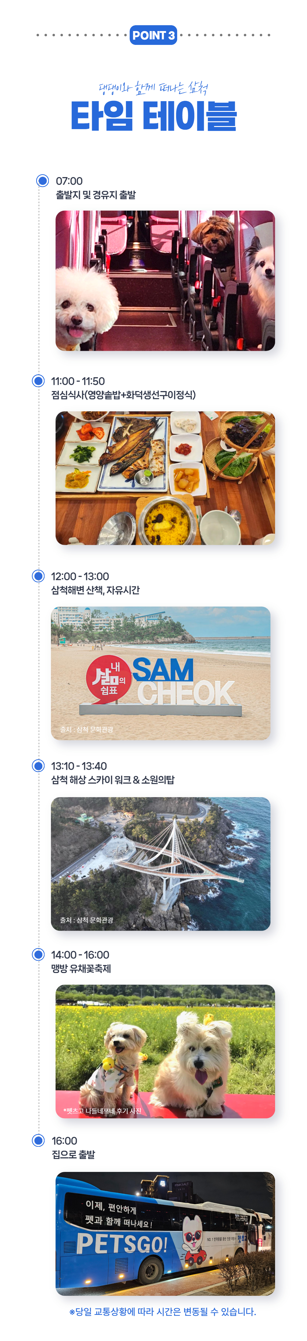 - 프로그램 내 식사장소(식당) 이용간 반려견 동반 이용 규정에 따라 반드시 이동가방(케이지) 혹은 슬링백, 유모차 사용이 필수입니다.